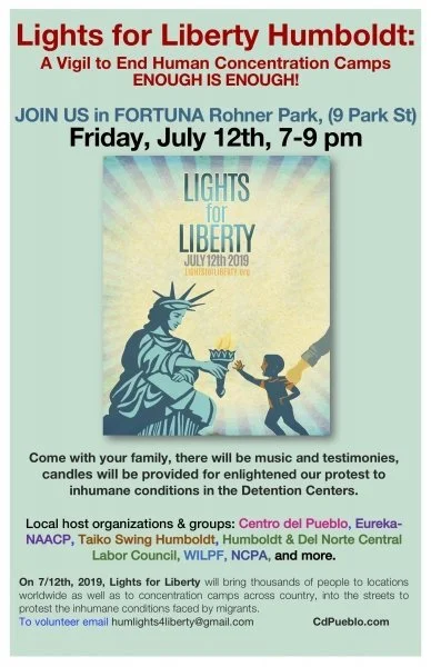 Humboldt Swing Taiko was a co-sponsor with Centro del Pueblo in this community event that highlighted the inhumane treatment of conditions faced by border migrants and to foster solidarity for refugees being used in concentration camps at our southern border. Vigils were held nationwide in protest.